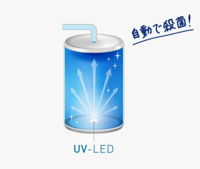 UV-LEDにより自動で殺菌し、清潔でおいしい水を楽しめるので、現場でのニーズにもバッチリ!
