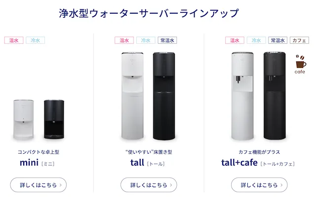 エブリィフレシャスは、水道水をそのまま利用できる浄水型ウォーターサーバーです。